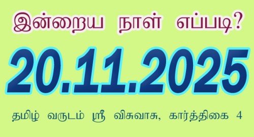 விசுவாவசு வருடம் கார்த்திகை மாதம் 4 ஆம் தேதி வியாழக்கிழமை 20.11.2025.