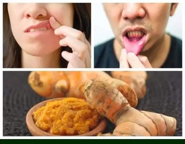 இரண்டு சிட்டிகை அளவு மஞ்சளை எடுத்து சில துளிகள் தண்ணீர் விட்டு குழைத்து பேஸ்ட்டாக்கி அதை காலை மற்றும் இரவு படுக்கச் செல்லும்முன் வாய்ப்புண்கள் இருக்கும் இடத்தில் அப்ளை செய்து வர வேண்டும். இப்படி செய்து வரும்போது ஒரு சில நாட்களிலேயே நல்ல மாற்றத்தை காண்பீர்கள்.