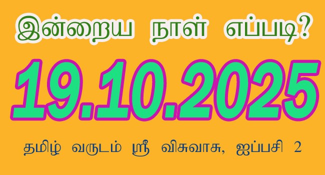 விசுவாவசு வருடம் ஐப்பசி மாதம் 2 ஆம் தேதி ஞாயிற்றுக்கிழமை 19.10.2025