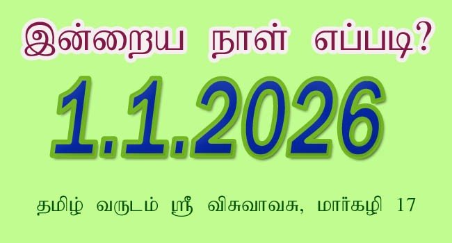 விசுவாவசு வருடம் மார்கழி மாதம் 17 ஆம் தேதி வியாழக்கிழமை 1.1.2026.