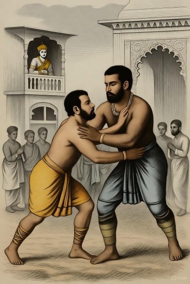 மாமிச மலை’ தான் வெல்வான் என்றிருந்த கணத்தில், சட்டென்று அவனை புரட்டிப் போட்டு வீழ்த்தி, சீற்றத்துடன் கர்ஜனை செய்தான் மகன். முகமெல்லாம் பூரிப்புடன் பயிற்சியாளரை பார்த்து, “இப்போது அவனை அழைத்து செல்லலாமா” என்றார்.