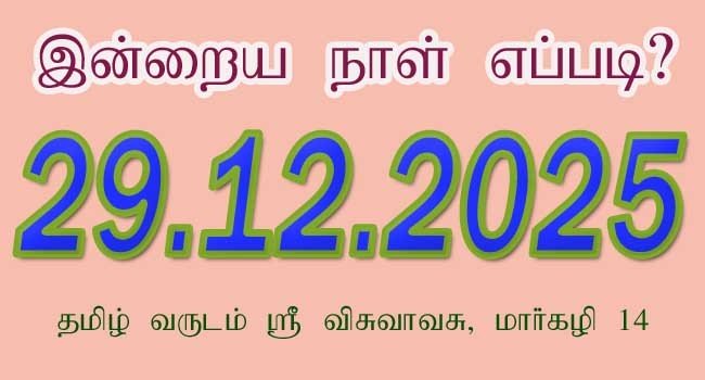 விசுவாவசு வருடம் மார்கழி மாதம் 14 ஆம் தேதி திங்கட்கிழமை 29.12.2025.
