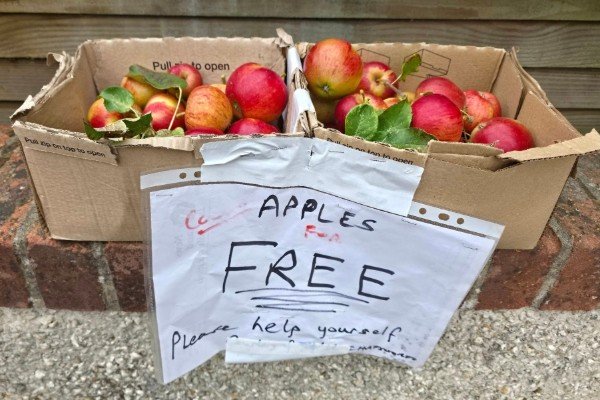 இங்கிலாந்தில் சில வீடுகளில் அப்பிள் பழங்களின் அறுவடையின் பின்னர் வீட்டுக்கு வேண்டுமான பழங்களை எடுத்து கொண்டு மீதமானவற்றை வெளியே வைத்துவிடுவார்கள். வழியி்ல் செல்லும் வழிபோக்கர்கள் இலவசமாக எடுத்து செல்ல வைத்து விடுவார்கள்.