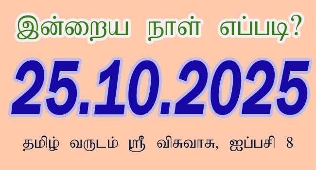 விசுவாவசு வருடம் ஐப்பசி மாதம் 8 ஆம் தேதி சனிக்கிழமை 25.10.2025