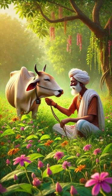 "எனக்கு இந்த மாதிரி விஷயங்கள் பற்றி தெரியாது.நான் வயதானவன் மற்றும் பலவீனமானவன், என்னால் எதுவும் செய்ய முடியாது. ஆனால் மற்றவர்களின் கருத்துகளையும் ஆலோசனைகளையும் நாம் கேட்டால், என் பசுவை இறப்பிலிருந்து காப்பாற்ற முடியும். நீ எனக்கு ஒரு உதவி செய்வாயா?"