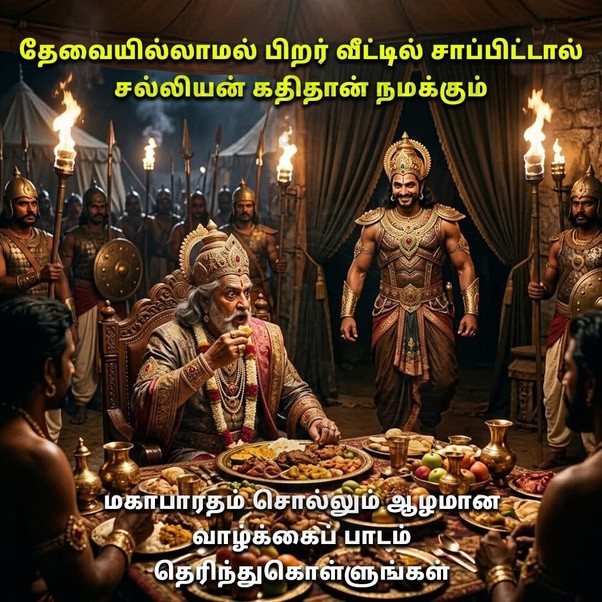 பழமையான இந்திய இதிகாசங்களில் ஒன்று மகாபாரதம். இந்த மகாகாவியம் மனித வாழ்க்கையின் பல நுணுக்கமான உண்மைகளை கதைகளின் மூலம் எடுத்துரைக்கிறது. அத்தகைய ஒரு ஆழமான வாழ்க்கைப் பாடத்தை உணர்த்தும் சம்பவம் சல்லியன் சம்பந்தப்பட்டதாகும்.