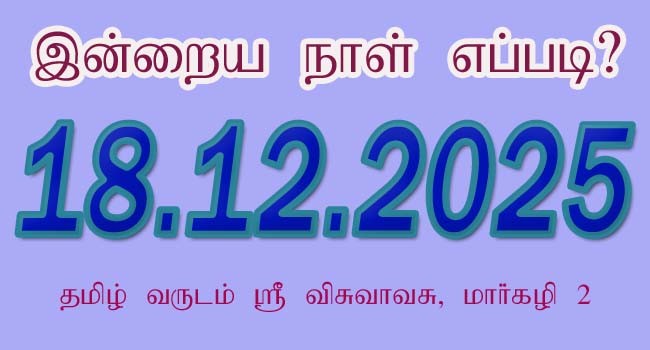 விசுவாவசு வருடம் மார்கழி மாதம் 3 ஆம் தேதி வியாழக்கிழமை 18.12.2025.