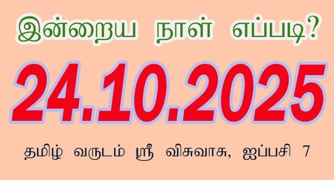 விசுவாவசு வருடம் ஐப்பசி மாதம் 7 ஆம் தேதி வெள்ளிக்கிழமை 24.10.2025.