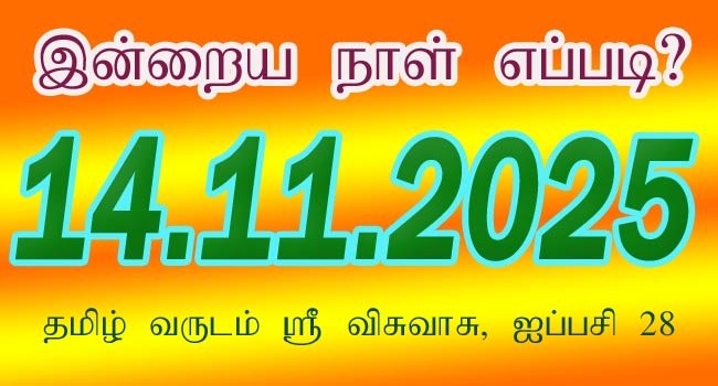 விசுவாவசு வருடம் ஐப்பசி மாதம் 28 ஆம் தேதி வெள்ளிக்கிழமை 14.11.2025