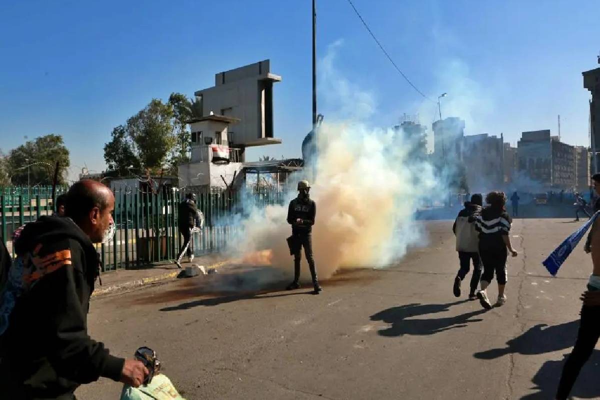 அமெரிக்க தூதரகம் மற்றும் முக்கிய அரச அலுவலகங்கள் அமைந்துள்ள பாக்தாத்தின் பாதுகாக்கப்பட்ட பகுதிக்குள் நுழைய முயன்ற போராட்டக்காரர்கள், அங்கிருந்த பாதுகாப்புப் படையினர் மீது சரமாரியாக கற்களை வீசித் தாக்குதல் நடத்தினர்.