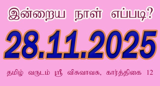 விசுவாவசு வருடம் கார்த்திகை மாதம் 12 ஆம் தேதி வெள்ளிக்கிழமை 28.11.2025,
