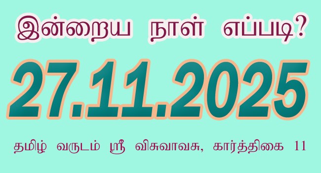 விசுவாவசு வருடம் கார்த்திகை மாதம் 11 ஆம் தேதி வியாழக்கிழமை 27.11.2025