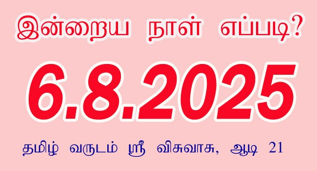 விசுவாவசு வருடம் ஆடி மாதம் 21 ஆம் தேதி புதன்கிழமை 6.8.2025.