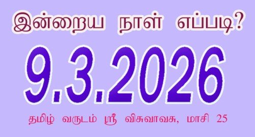 விசுவாவசு வருடம் மாசி மாதம் 25 ஆம் தேதி திங்கட்கிழமை 9.3.2026.