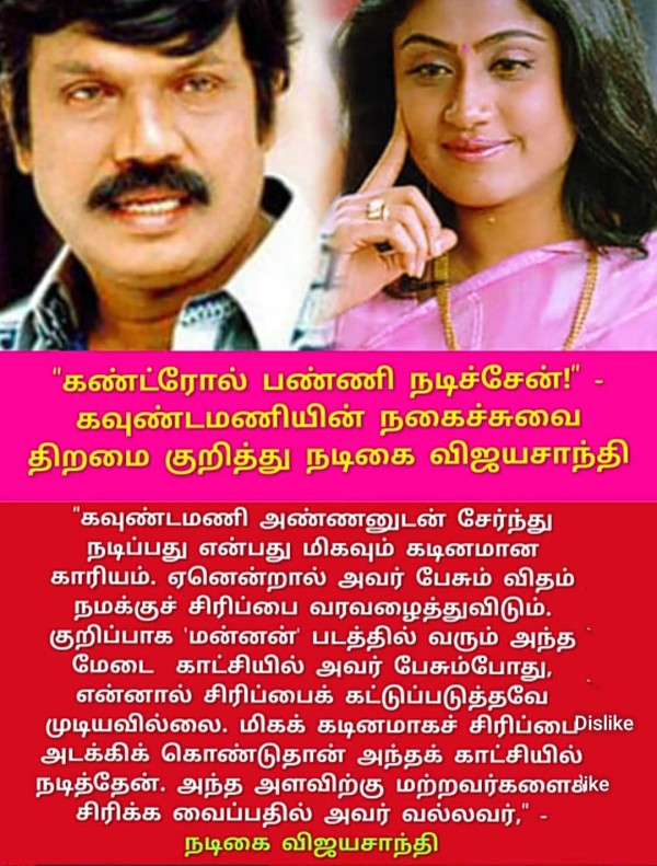 ஊட்டிக்கு போகாதிங்க என கத்தும் பைத்தியமாக, இயக்குநர் மணிவண்ணன் தந்த மறக்க முடியாத பாத்திரங்களில் நடித்தவர். கார்த்திக் உடன் வருஷம் 16 படத்தில் இவர் ராஜாமணியாக அடித்த லூட்டி, பிரபுவுடன் பாட்டு வாத்தியாராக கன்னிராசி இப்படி பின்னி பெடல் எடுத்து இருப்பார்.