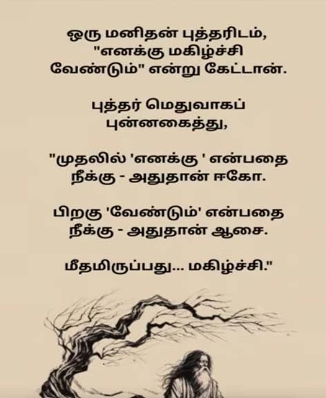 ஒருவன் "என்னிடம் கோடிக்கணக்கில் பணம் உள்ளது. தேவை உள்ள மக்களே திரண்டு மெரினா பீச்சுக்கு வாருங்கள்" என அறிவித்தான். மக்களும் லட்சக்கணக்கில் திரண்டனர். அப்போது அங்கே வருகை தந்த அந்த கோடிஸ்வரன் ஒரு அறிவிப்பை வெளியிட்டான்.