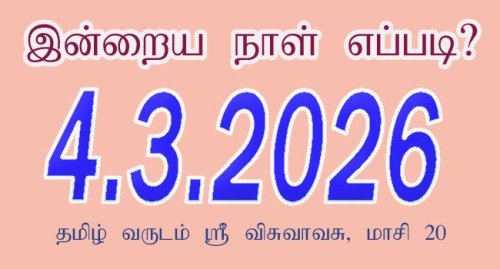 விசுவாவசு வருடம் மாசி மாதம் 20 ஆம் தேதி புதன்கிழமை 4.3.2026.