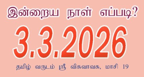 விசுவாவசு வருடம் மாசி மாதம் 19 ஆம் தேதி செவ்வாய்க்கிழமை 3.3.2026