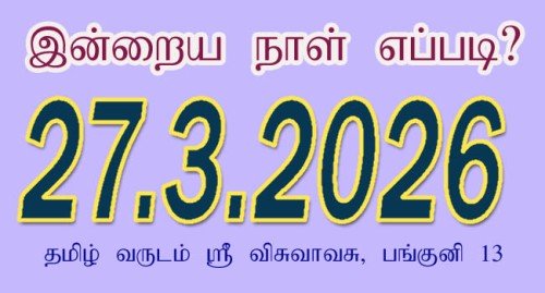 விசுவாவசு வருடம் பங்குனி மாதம் 13 ஆம் தேதி வெள்ளிக்கிழமை 27.3.2026.