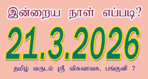 விசுவாவசு வருடம் பங்குனி மாதம் 7 ஆம் தேதி சனிக்கிழமை 21.3.2026