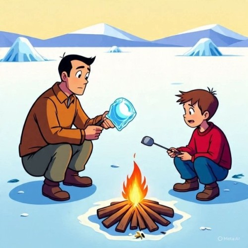பாலைவனம் என்றால் மணலாகக் கொட்டிக் கிடக்கும் இடம் மட்டும் அல்ல. செடி, கொடிகள் எதுவும் வளரமுடியாத பனிப்பிரதேசங்களும் பாலைவனம்தான். அப்படி ஒரு பாலைவனத்தில் சந்தர்ப்ப சூழ்நிலை காரணமாக அப்பாவும் மகனும் மாட்டிக் கொண்டார்கள். அவர்கள் நடக்க நடக்க பனிப்பாறைகள் தான் இருந்தனவே தவிர வேறு எதுவுமில்லை. பிடித்து சாப்பிட மீன் இருக்கும் குளம், குட்டை என்று எதுவுமில்லை. எல்லாமே உறைந்திருந்தன. பசியால் உயிர் போய்விடுமோ என்ற பயம் மகனுக்கு ஏற்பட்டது. அப்பாவைப் பார்த்தான். ‘‘ஏதாவது வழி இருக்கும், தளர்ந்து விடாதே’’ என்றார் அப்பா.