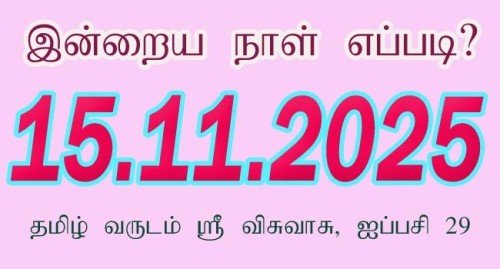 விசுவாவசு வருடம் ஐப்பசி மாதம் 29 ஆம் தேதி சனிக்கிழமை 15.11.2025.