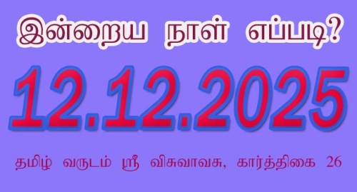 விசுவாவசு வருடம் கார்த்திகை மாதம் 26 ஆம் தேதி வெள்ளிக்கிழமை 12.12.2025.