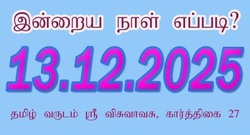 விசுவாவசு வருடம் கார்த்திகை மாதம் 27 ஆம் தேதி சனிக்கிழமை 13.12.2025.