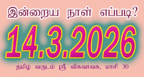 விசுவாவசு வருடம் மாசி மாதம் 30 ஆம் தேதி சனிக்கிழமை 14.3.2026.