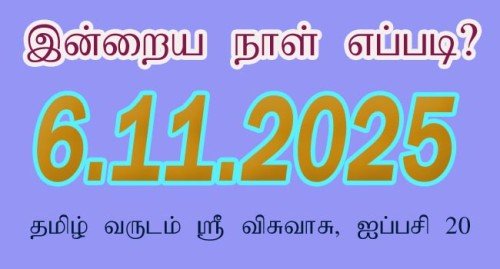 விசுவாவசு வருடம் ஐப்பசி மாதம் 20 ஆம் தேதி வியாழக்கிழமை 6.11.2025.