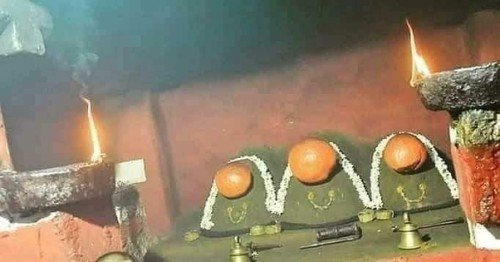”இது சிவனால் செய்யப்பட்ட சிலை, இப்படி அந்தணர் உருவத்தில் சிவன் வந்து நின்றார். மனைவியுடன் வந்து என்னிடம் பேசினார், தண்ணீர் கேட்டார் மறுத்தேன், இது தான் இருக்கிறது என்று மழுவை காண்பித்தேன், மழுவை ஏந்திக் குடித்தார் மறைந்தார்,” என்று சொல்ல….