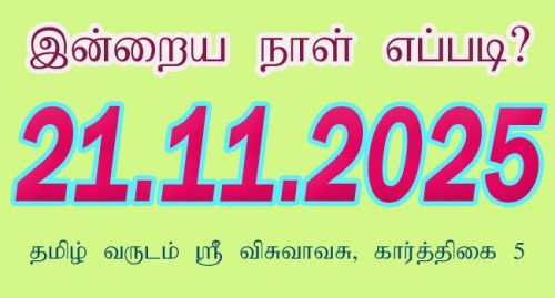 விசுவாவசு வருடம் கார்த்திகை மாதம் 4 ஆம் தேதி வியாழக்கிழமை 20.11.2025.