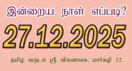 விசுவாவசு வருடம் மார்கழி மாதம் 12 ஆம் தேதி சனிக்கிழமை 27.12.2025.